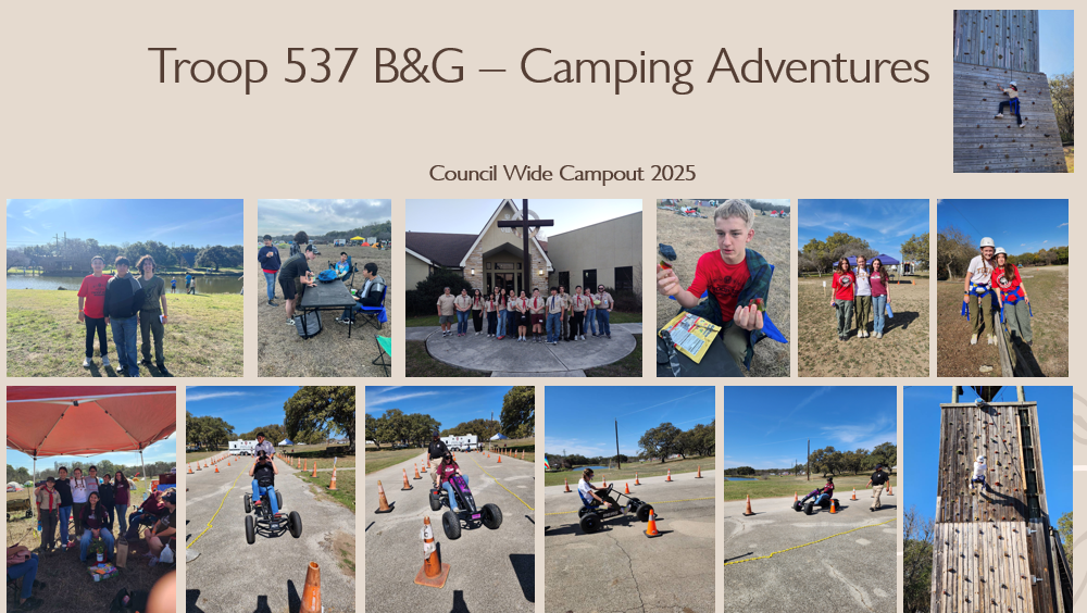 As you look through our past adventures, we want you and your scout to think about your future adventures. We hope that you'll envision yourselves with Troop 537. This photo gallery may feature you and your scout.